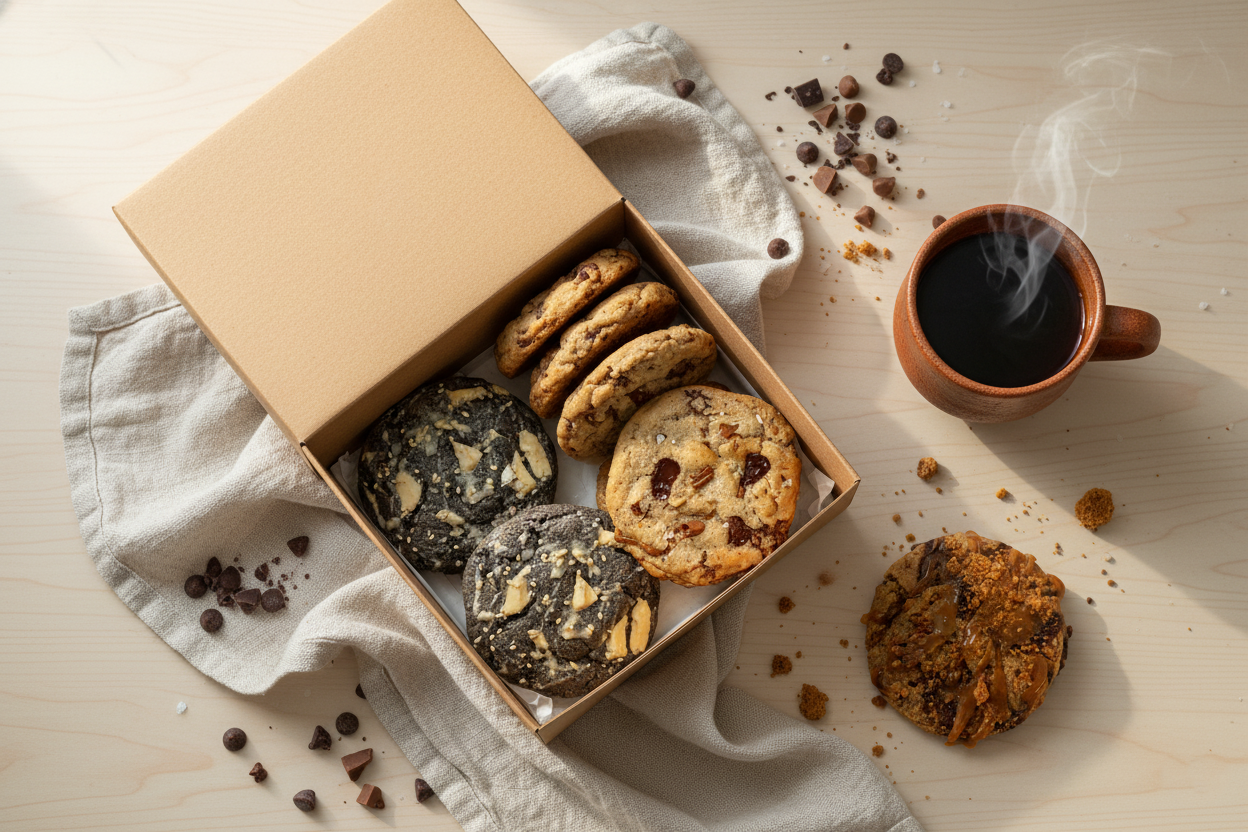 Ich habe die Cookie Box aus Neugier bestellt und war total begeistert. Jeder einzelne Keks hat seine eigene Persönlichkeit – vom zarten Sesam bis zur klebrigen Dreifachschokolade. Die Präsentation ist so schön, dass ich zögerte, sie zu öffnen, aber als ich es tat, konnte ich nicht mehr aufhören. Man merkt, dass jedes Detail, von der Verpackung bis zum Geschmack, mit Liebe gestaltet wurde.